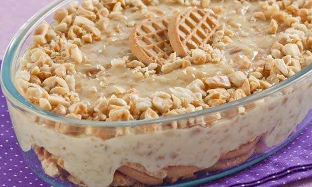 Cobrir com amendoim reservado para enfeitar. Leve para gelar.